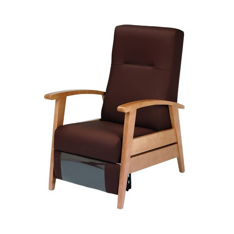 Este sillón presenta laterales y brazos de madera de haya barnizada que no solo le otorgan un aspecto elegante, sino que también garantizan una gran resistencia, haciéndolo ideal para su uso en residencias de personas mayores. Además, ofrece la flexibilidad de elegir entre dos tipos de mecanismos: el clásico de accionamiento manual por empuje o el mecanismo eléctrico controlado por un mando con cable, para adaptarse a las preferencias individuales de cada usuario.